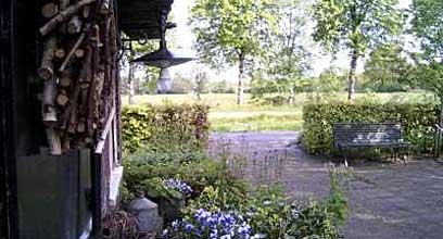 is omgeven door een groot erf, traditioneel aangelegd, overgaand in omringend