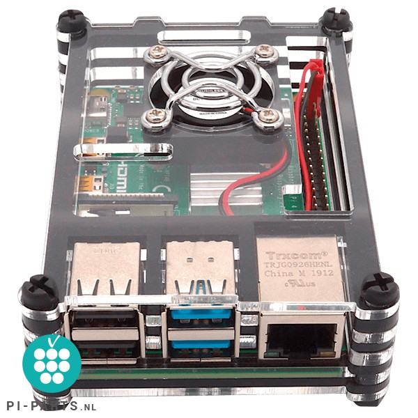 Het fraaie, open design met gestapelde lagen van acryl vormt een behuizing waarin jouw Raspberry Pi goed zichtbaar en beschermd verpakt is. Inclusief brushless ventilator. |