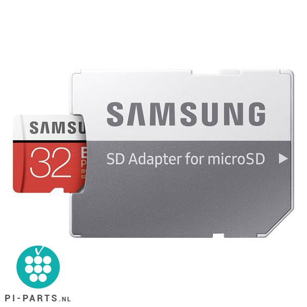 Samsung Ultra micro SD kaart | 32GB | 80MB/s– met adapter –Bij Pi-Parts.nl verkopen we de supersnelle Ultra Class 10 (UHS-I) micro SD-cards van het merk Samsung, zodat je verzekerd bent van de hoogst haalbare snelheid op je Raspberry Pi.